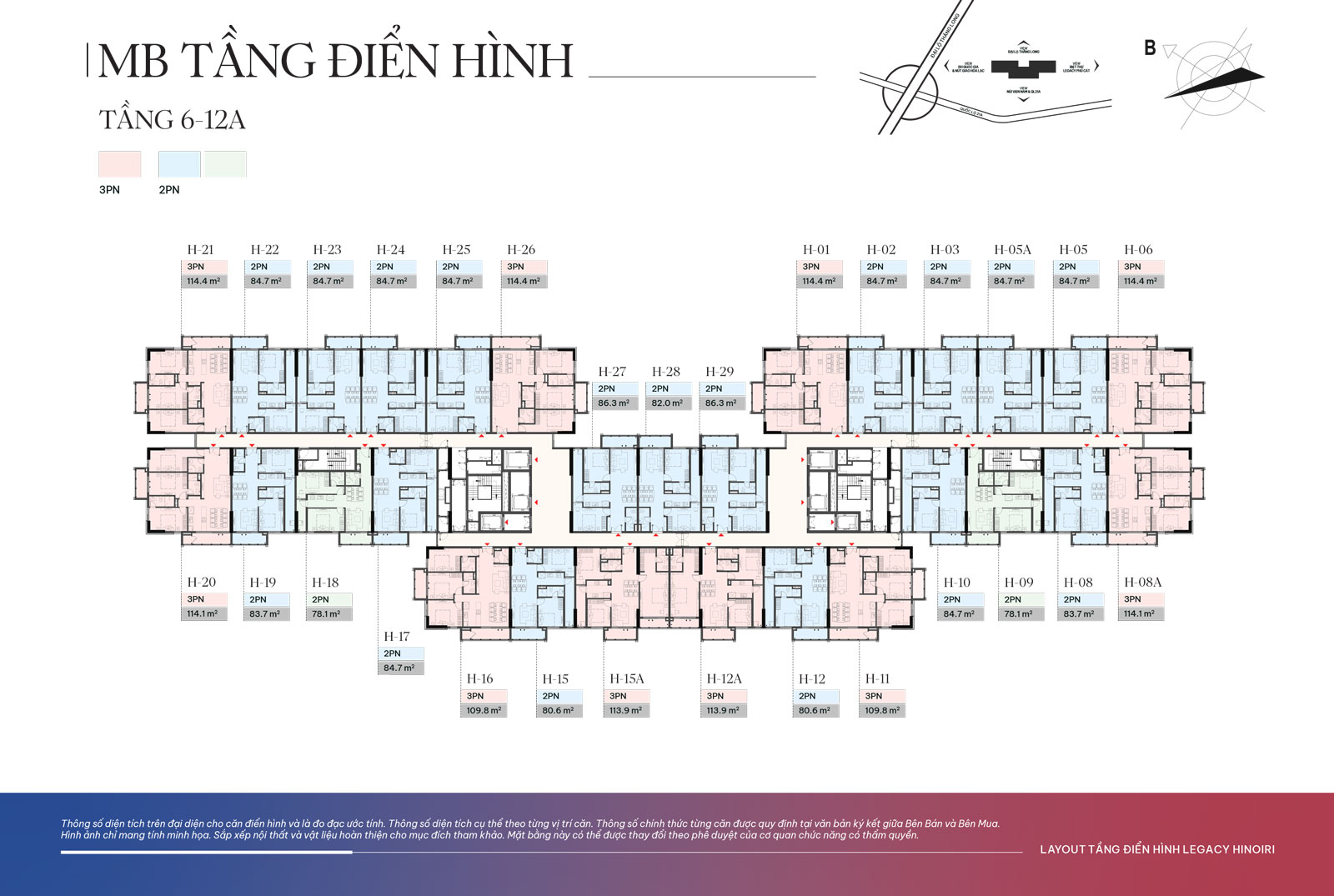 Với 350 căn hộ độc bản, tại Legacy Hinoiri được chia thành các loại căn hộ điển hình như sau: