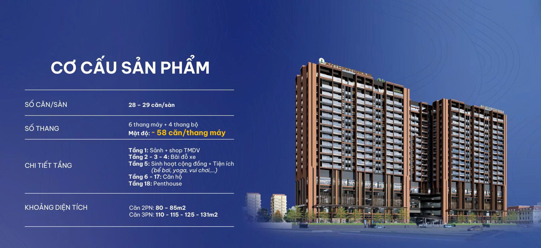 - Quy mô dự án: 344 căn hộ, 6 căn penthouse, 16 căn shop chân đế